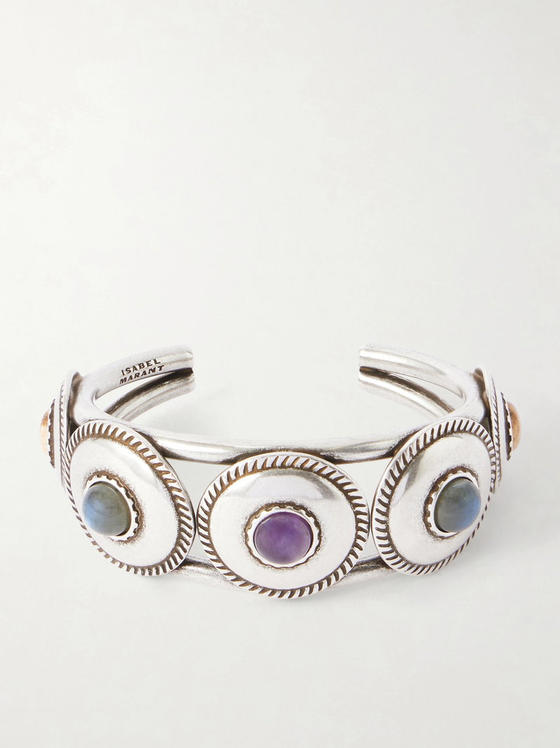 Isabel Marant's 'Lam' cuff has a subtly regal feel, centered with encrusted gems that catch the light. Made from silver-plated brass, it works just as well worn solo as it does stacked with other bracelets.