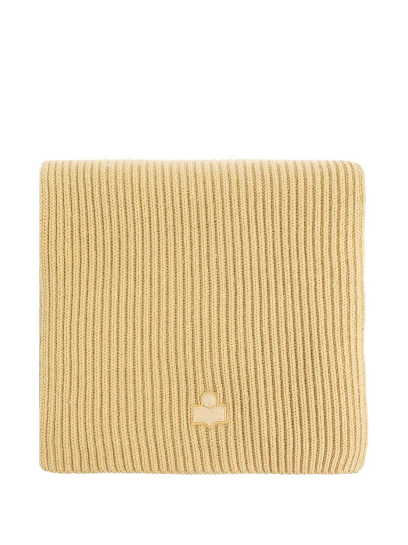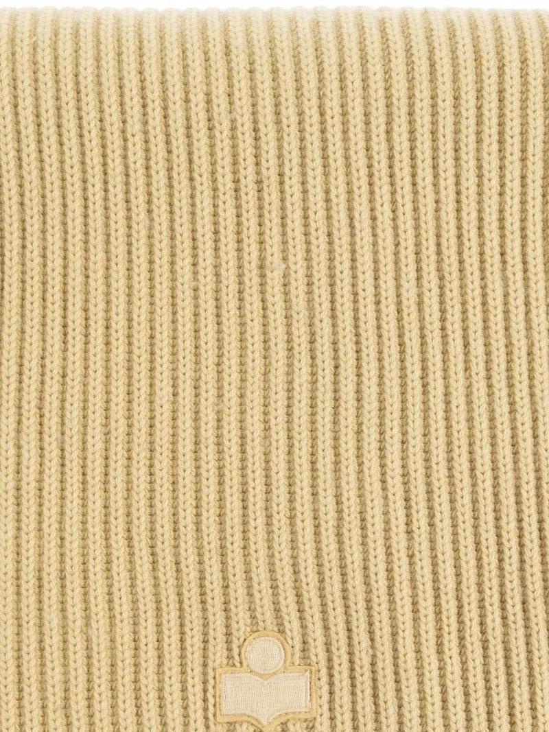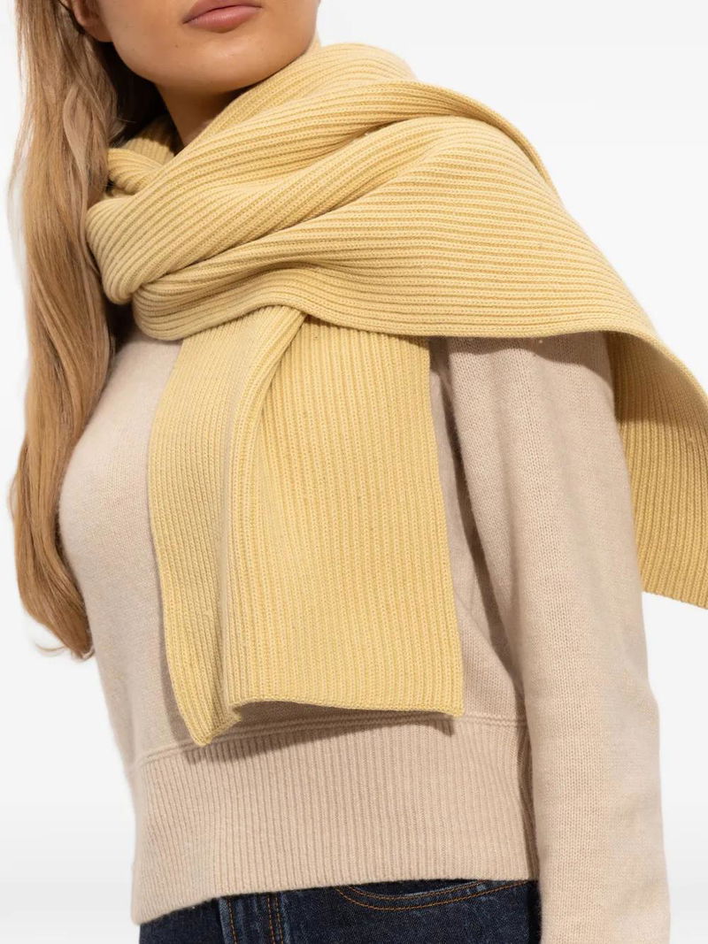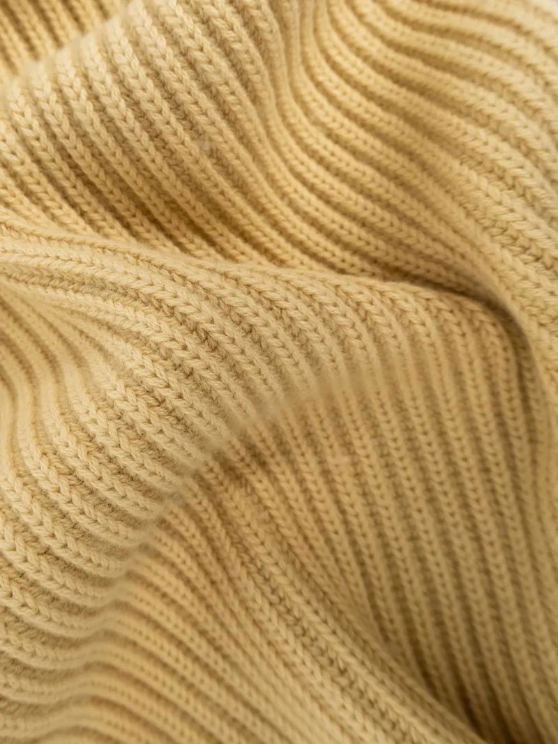 Light yellow, ribbed knit, logo appliqué.