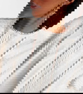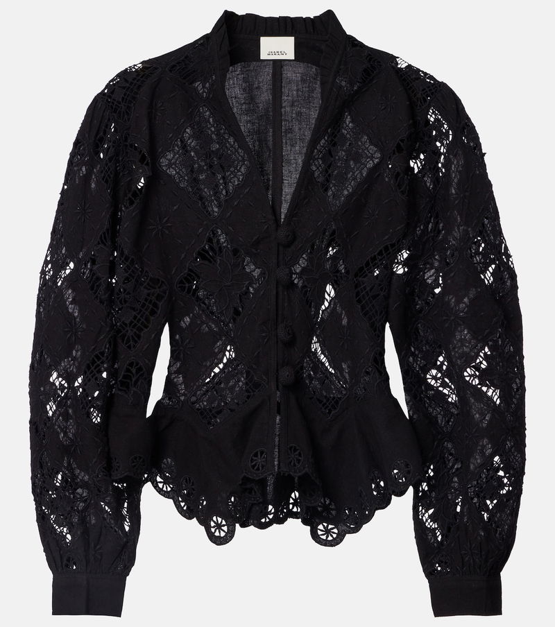Each Isabel Marant piece blends refined design with effortless looks for daily life. Made from cotton and linen broderie anglaise to a slightly cropped fit, the Nina blouse features voluminous sleeves and a gathered effect at the back.