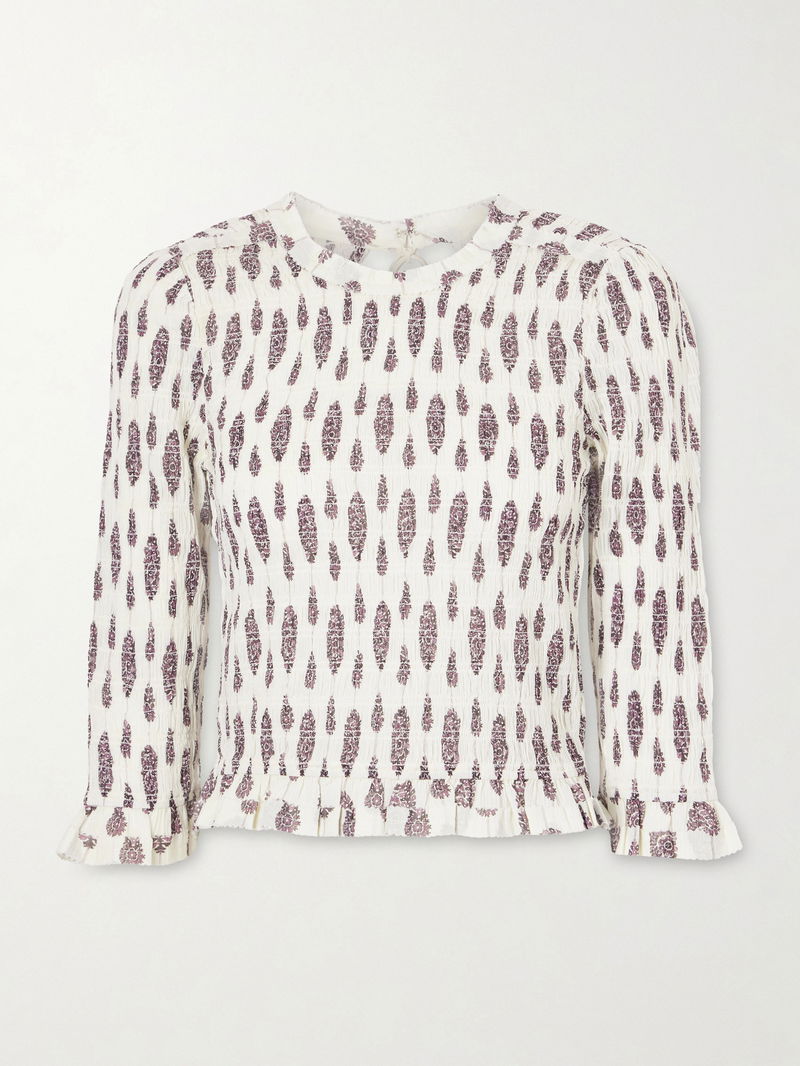 Isabel Marant's blouse can be worn as part of a set with the matching pants in our edit. It's made from smocked cotton for a close fit with an open back and ruffled trims. The floral print is so pretty.