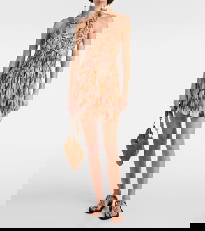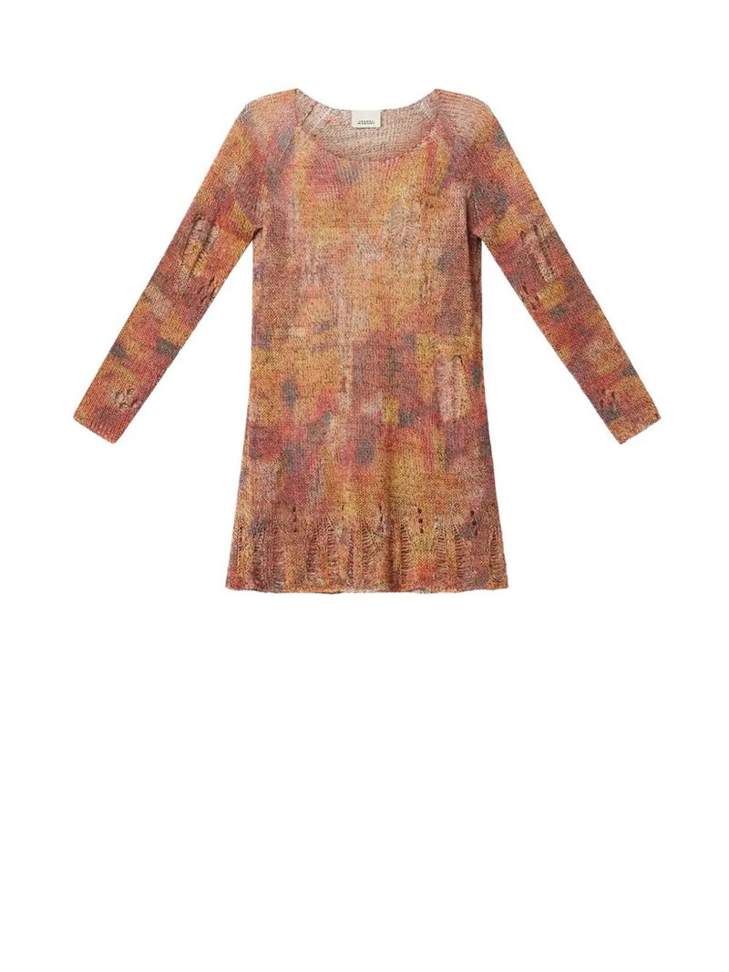 Orange multicoloured open-knit round neck long sleeves mini lenght.