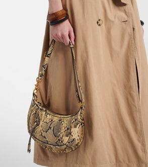 Curved shape, adjustable shoulder strap, brand foiled text at front, stud embellishment, one main compartment