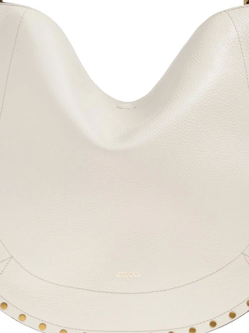 Cream calf leather, stud embellishment, single shoulder strap, logo detail, concealed magnetic fastening