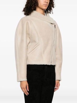 beige sheepskin effect pointed collar front button closure side slit pockets