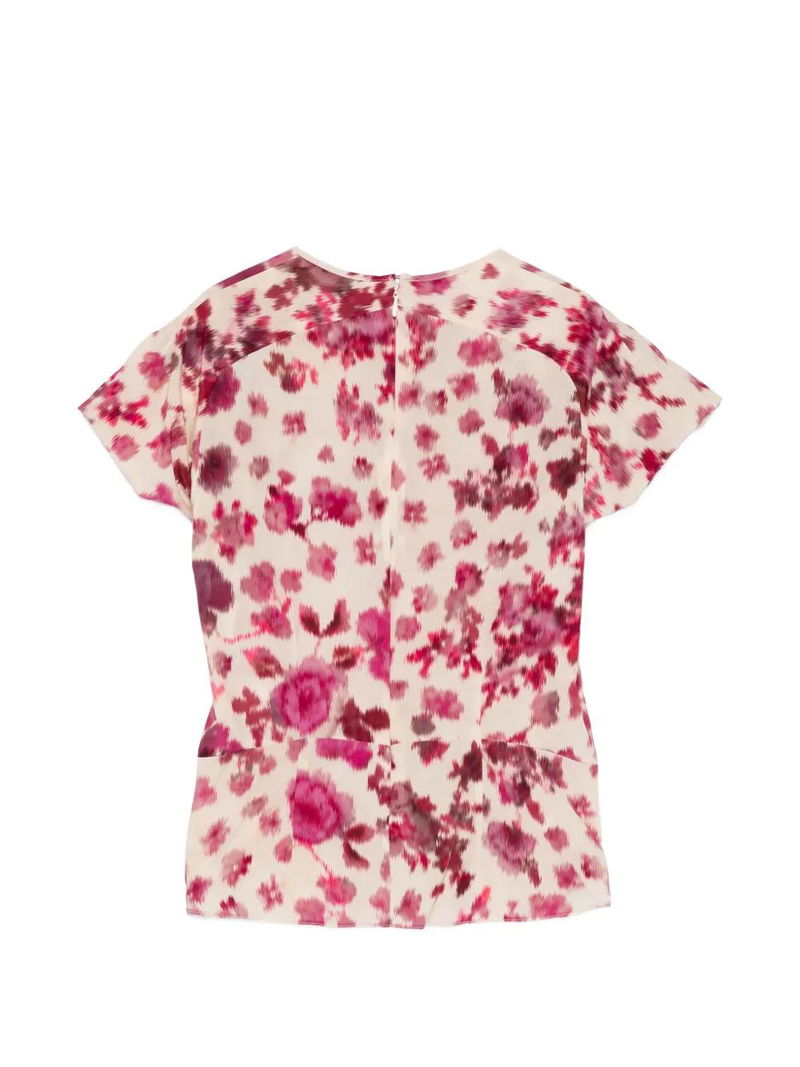 Light natural floral print knot detail short sleeves round neck silk.