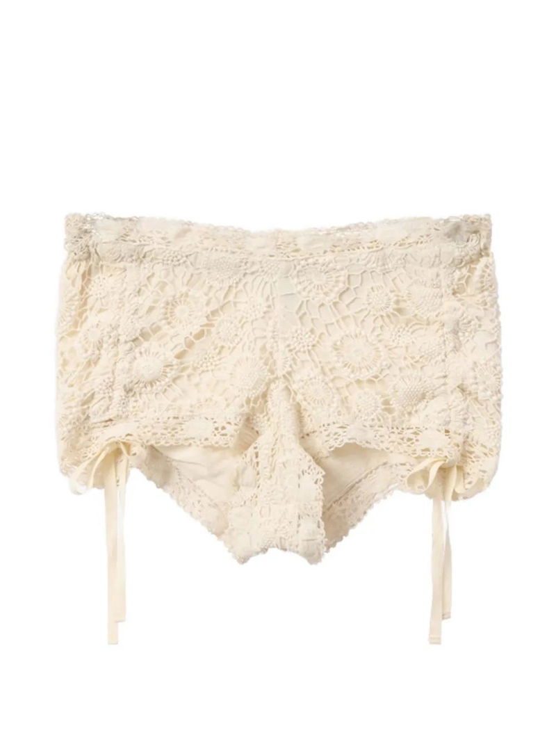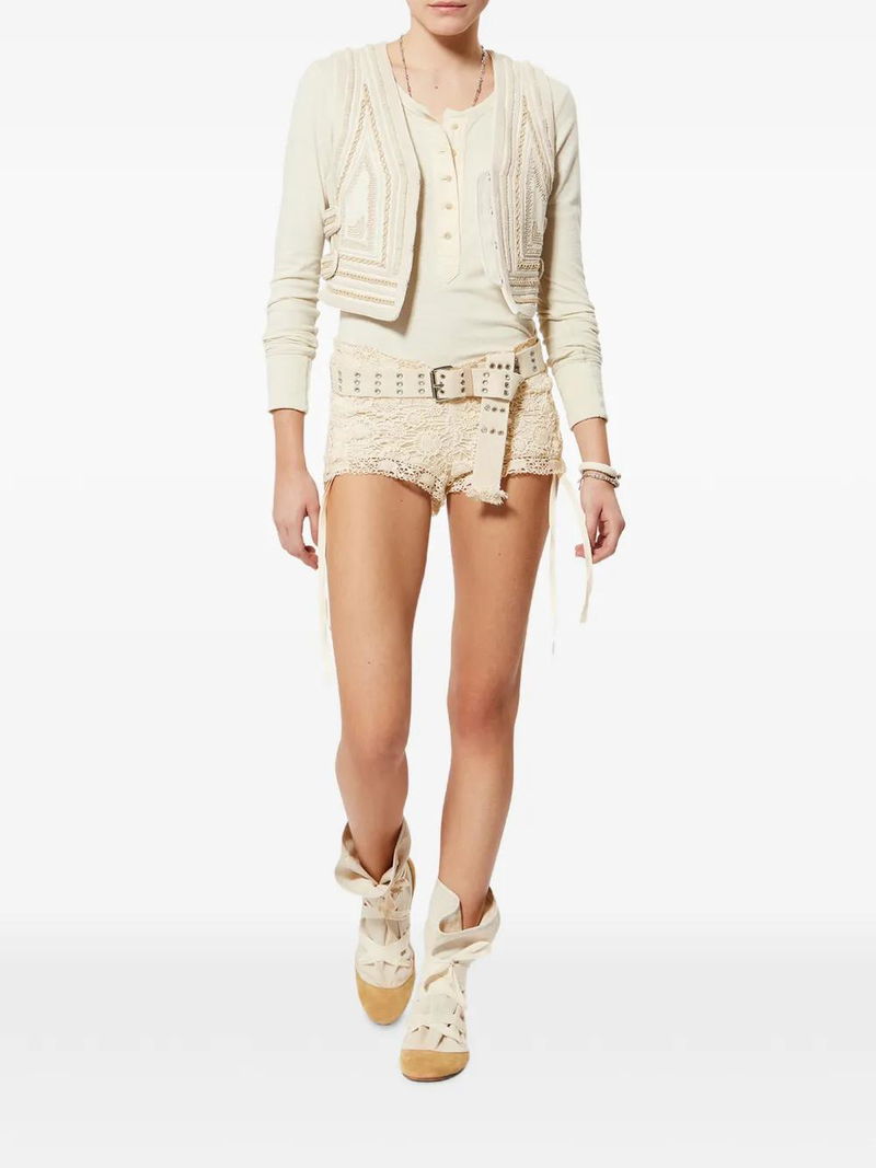 Yeliz Floral-details Mini Cotton Shorts.
