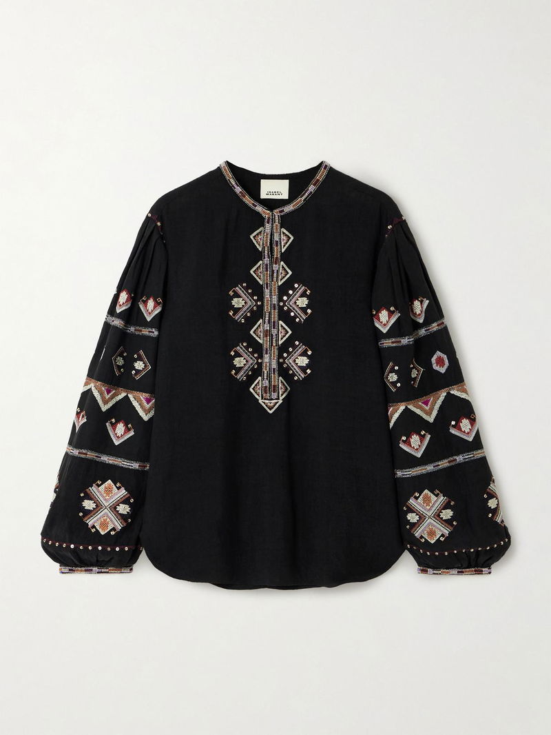 Isabel Marant’s Spring '25 collection is filled with intricate details – this embroidered blouse is embellished with scores of light-catching beads and sequins that are beautifully arranged to depict a geometric pattern.