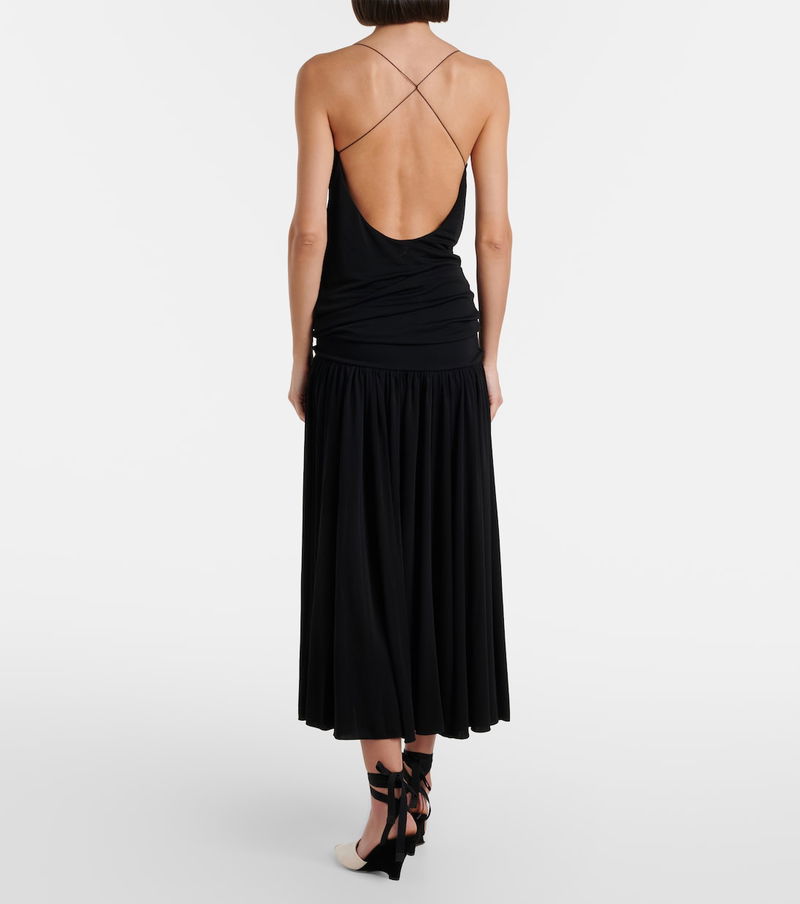Jacquemus brings a characterful vision of French fashion to the design of every new collection. The Abiha midi dress is crafted from fluid jersey and features a minimalist silhouette with a gathered skirt and an open back.