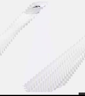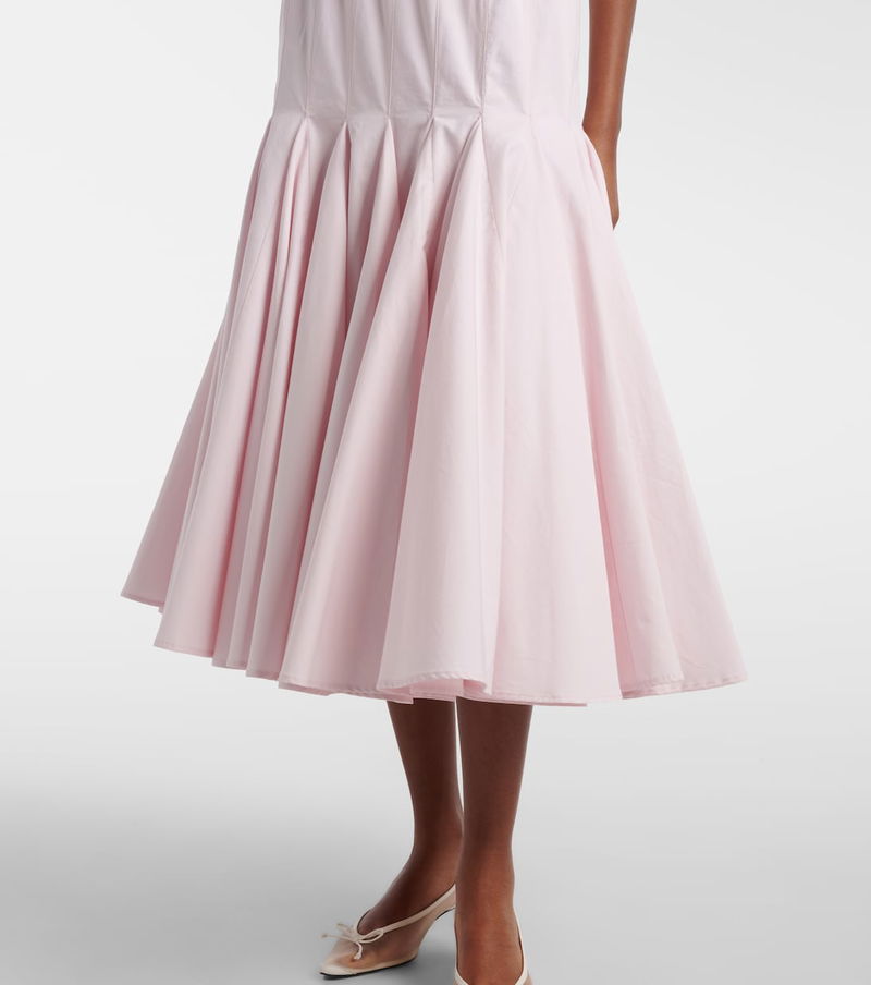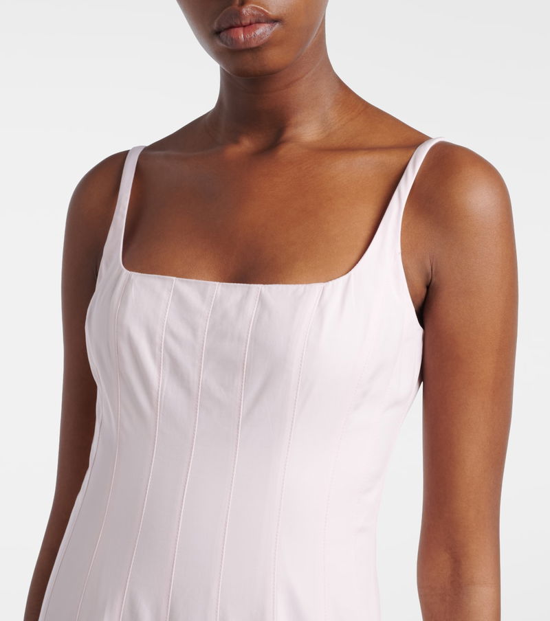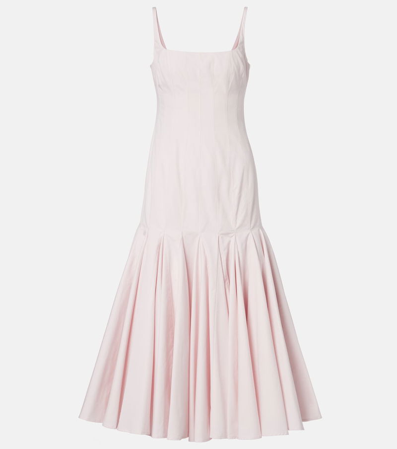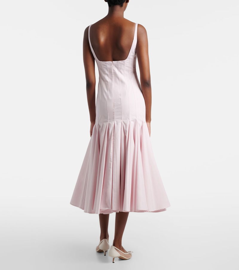 Jacquemus brings a characterful vision of French fashion, as in the Agave cotton poplin midi dress. Showcasing a fitted, low-back silhouette, the design is enhanced with sculptural stitched pleats at the hips and soft tulle lining that creates delicate flared volume.