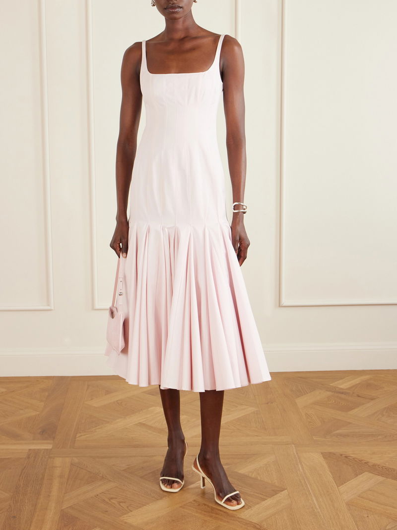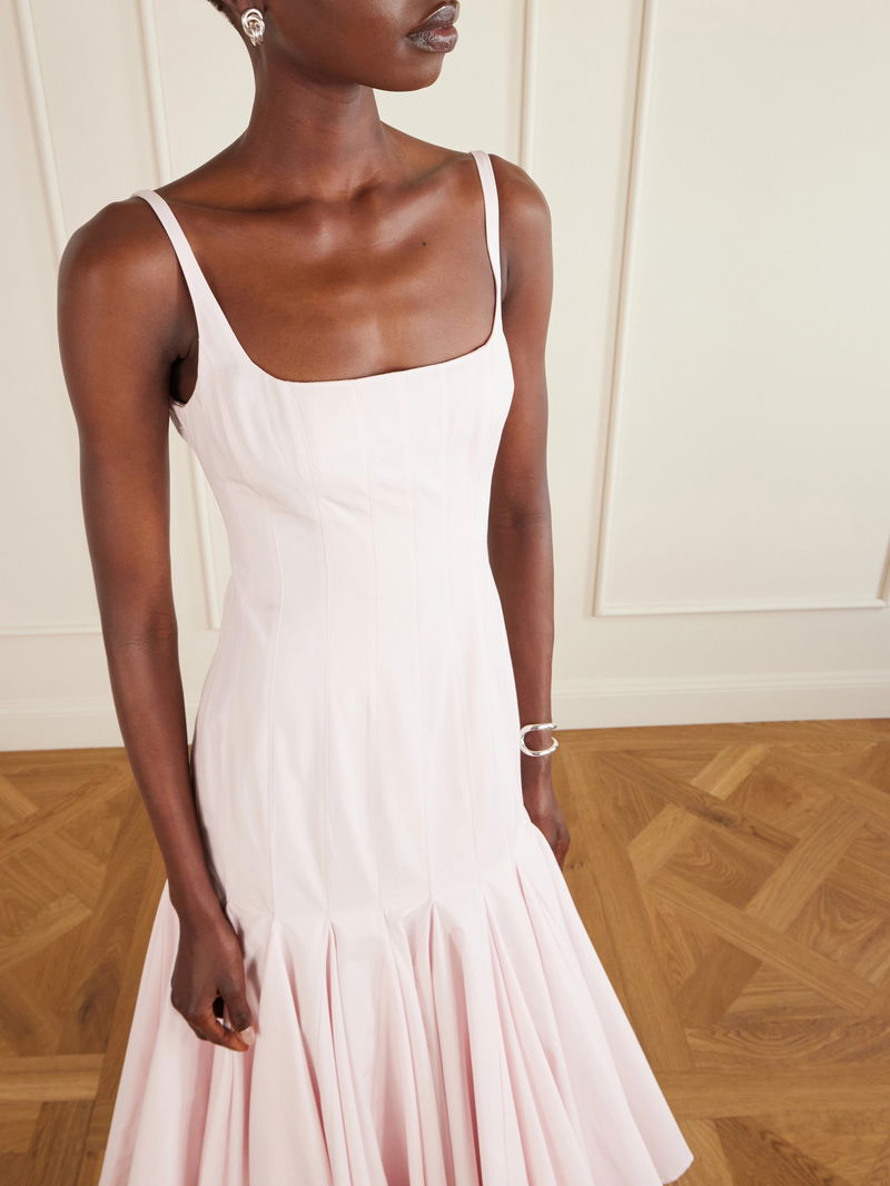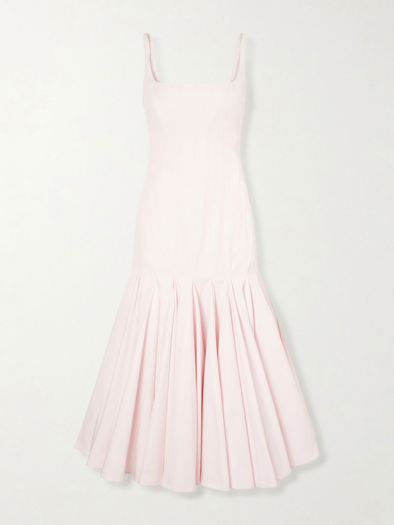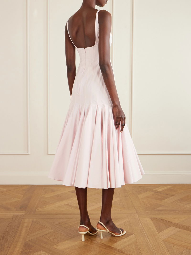 Jacquemus' 'Agave' dress is inspired by the art of corsetry. Made from crisp cotton-poplin, it has a paneled, fitted bodice and elegant square neckline that descends to voluminous godet pleats. Pair yours with dainty ballet flats or elevated sandals for twirling power.