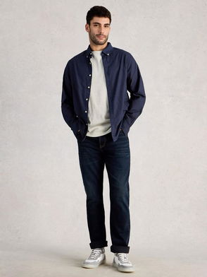 White logo embroidery button fastening long sleeves buttoned cuffs.