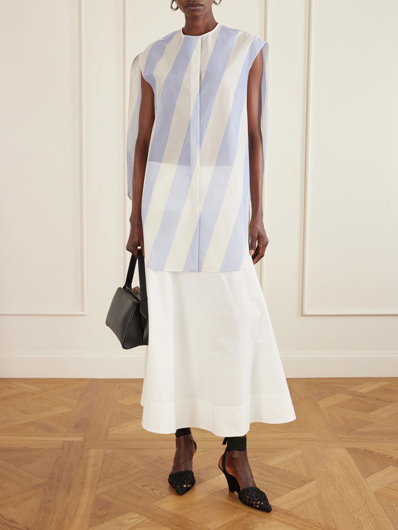 Jacquemus' 'Berlingot' shirt dress boasts the clean, pure lines the French designer does so well. Boxy in fit and layered at the shoulder seams, it's made from crisp, slightly sheer cotton-blend.