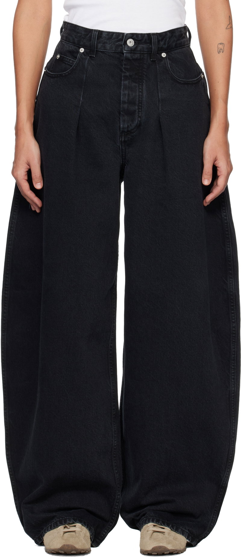Non-stretch denim jeans.