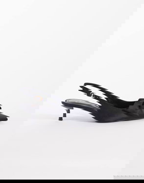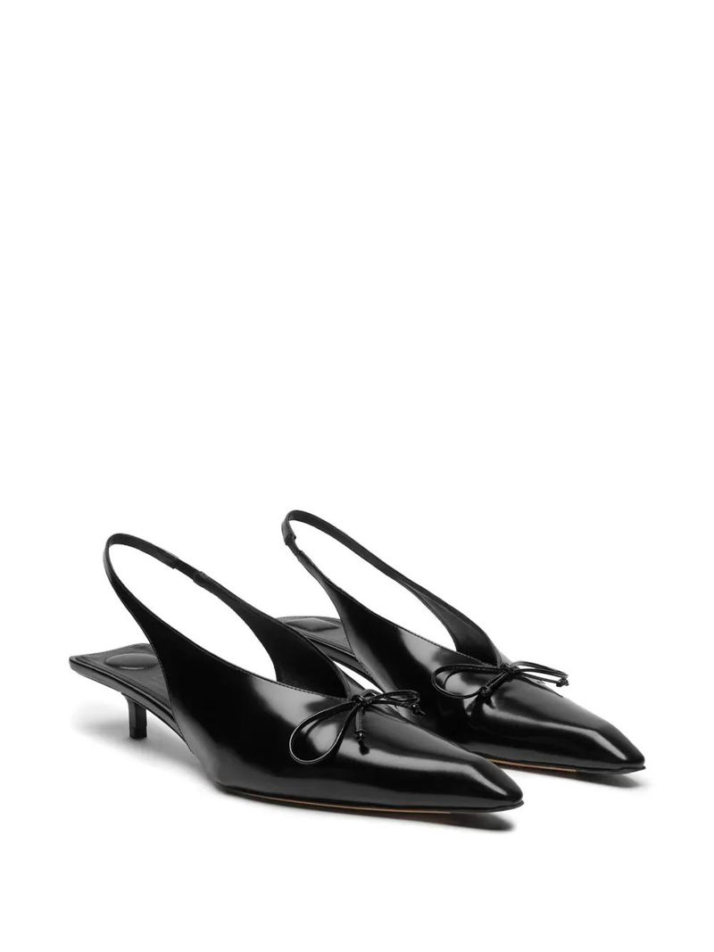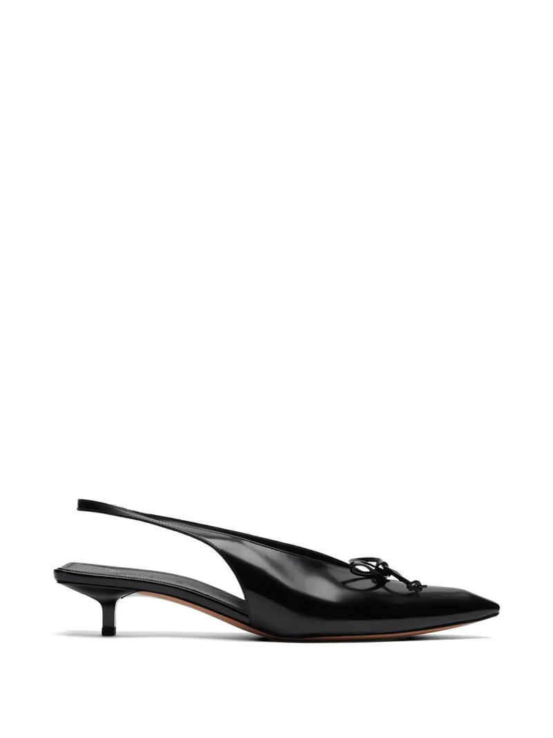 Black calf leather pointed toe bow slingback strap padded insole.