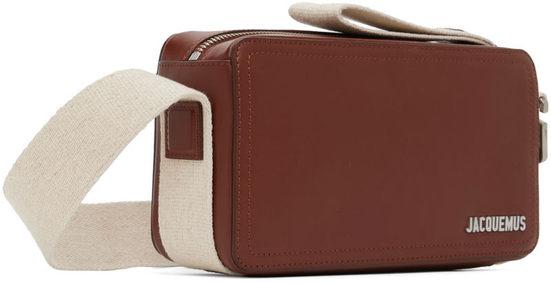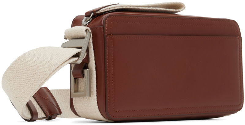 Buffed leather messenger bag in brown. Grosgrain trim in beige throughout.