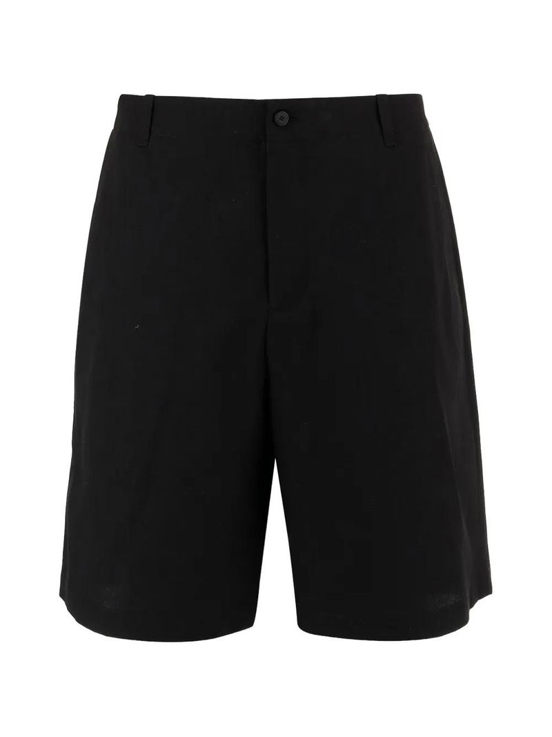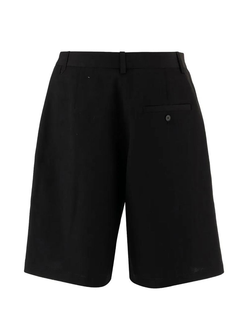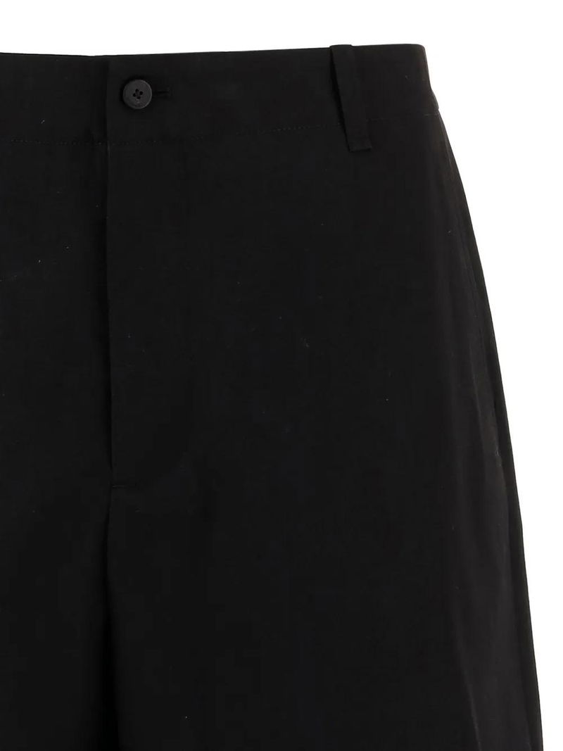 Black, button zip-fastening, belt-loops, front welt-pockets, back buttoned pocket.
