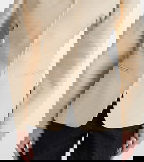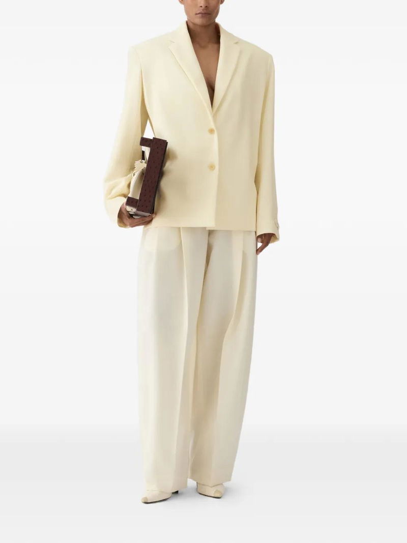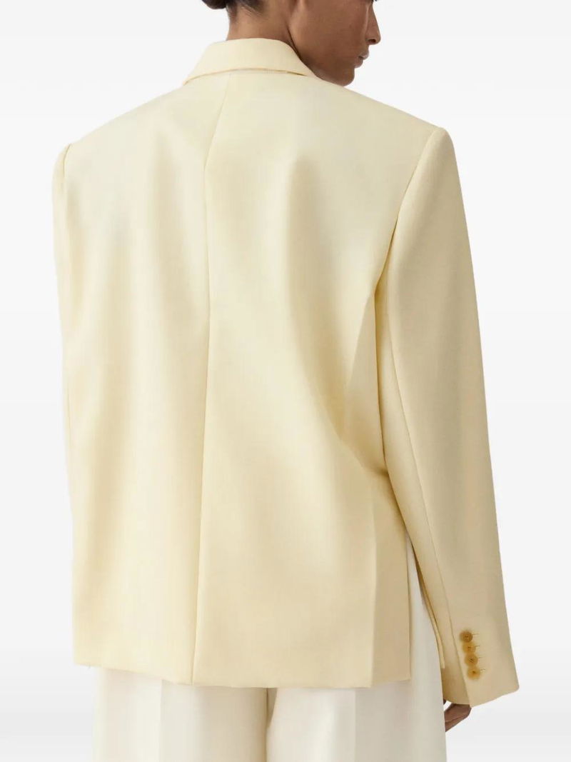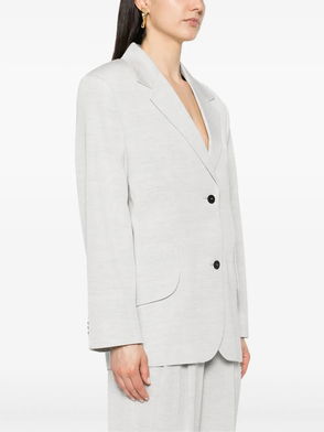 Off white buttoned cuffs two button fastening lapel collar structured shoulders.