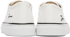 Beige, embroidered logo, lace-up closure, round toe, cotton.