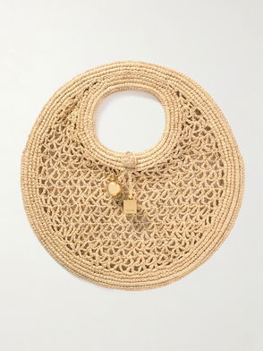 Jacquemus' 'La Spiagga' is crocheted from lace raffia in a square shape, contrasting so perfectly with the circular handle. Sized for your sunnies and cardholder, it's decorated with a couple of charms, a wooden sphere and the brand's'Rond-Carré' lock.