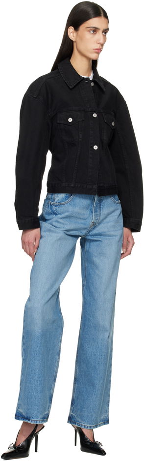 Jacquemus denim jacket. Exposed button fastening at front. Regular fit, spread-collar, long sleeves, buttoned cuffs, two buttoned pockets at front, gathered and buttoned martingale at back.