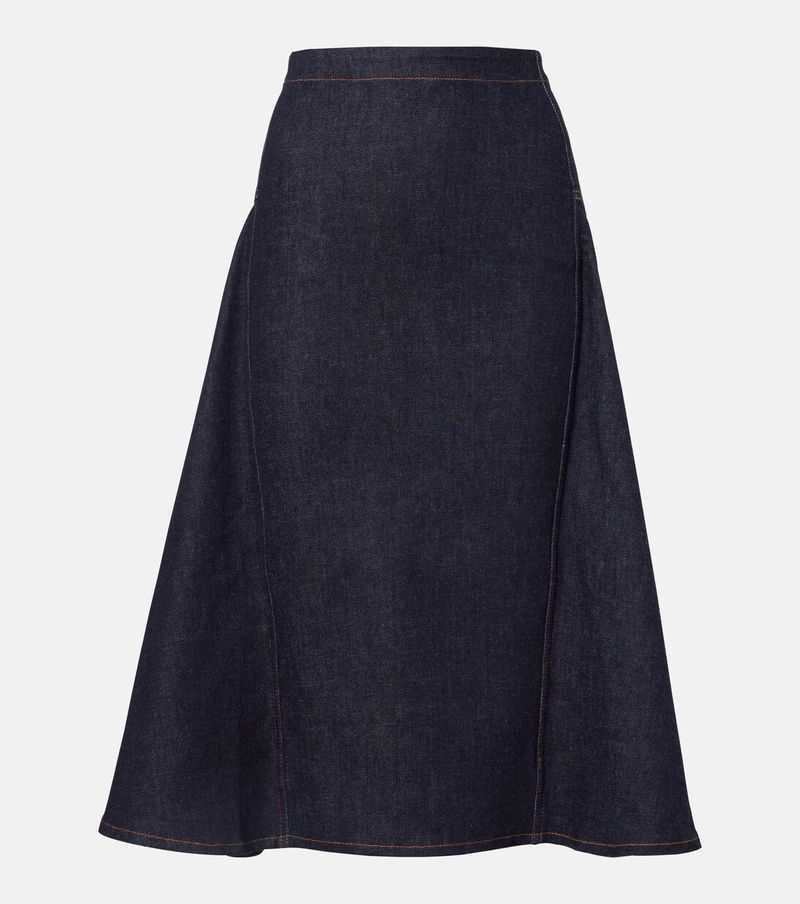 Jacquemus brings a characterful vision of French fashion to the design of every new collection. Crafted from a cotton and cashmere-blend denim, the Lavoir de-Nîmes midi skirt is cut in a flattering pencil silhouette, defined by placed godets at the sides and back for subtle volume, and accented with contrast stitching.