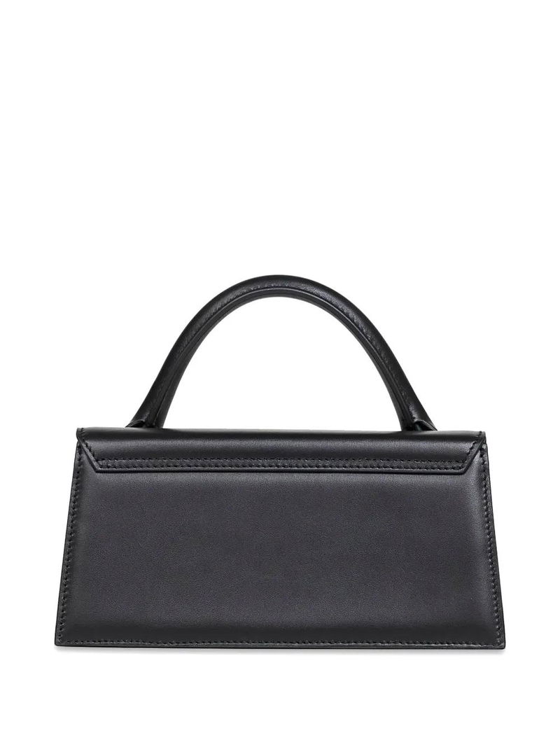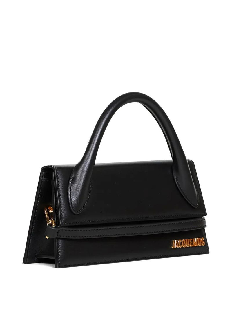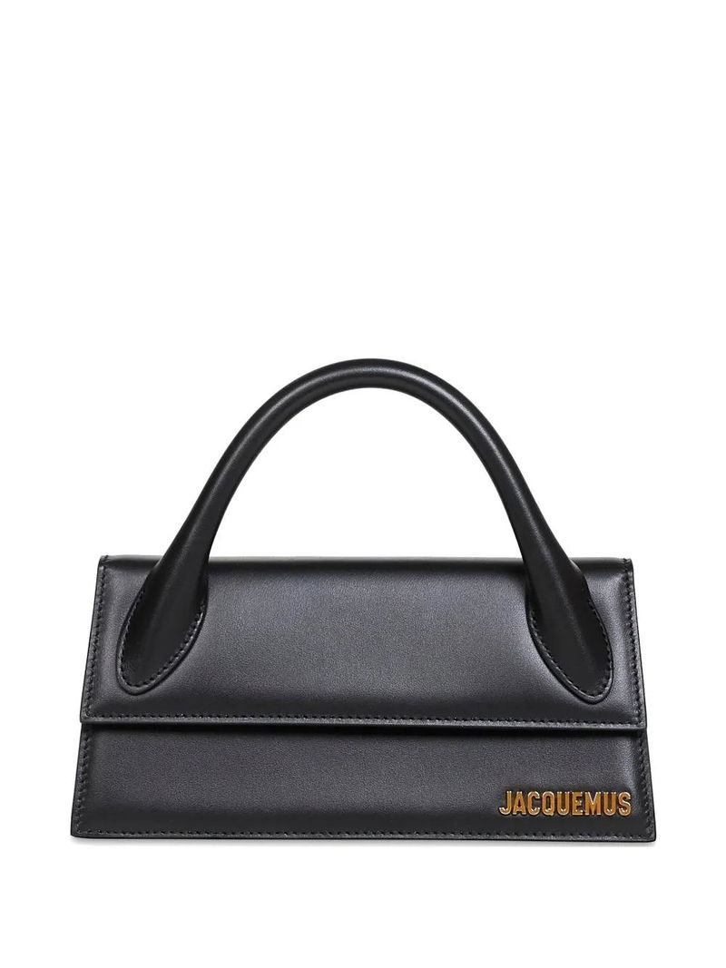 Black metal logo foldover top magnetic fastening top handle gold-tone hardware.