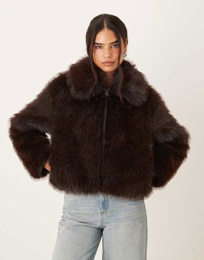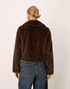 brown leopard pattern faux-fur design high neck toggle fastening cropped design long sleeves