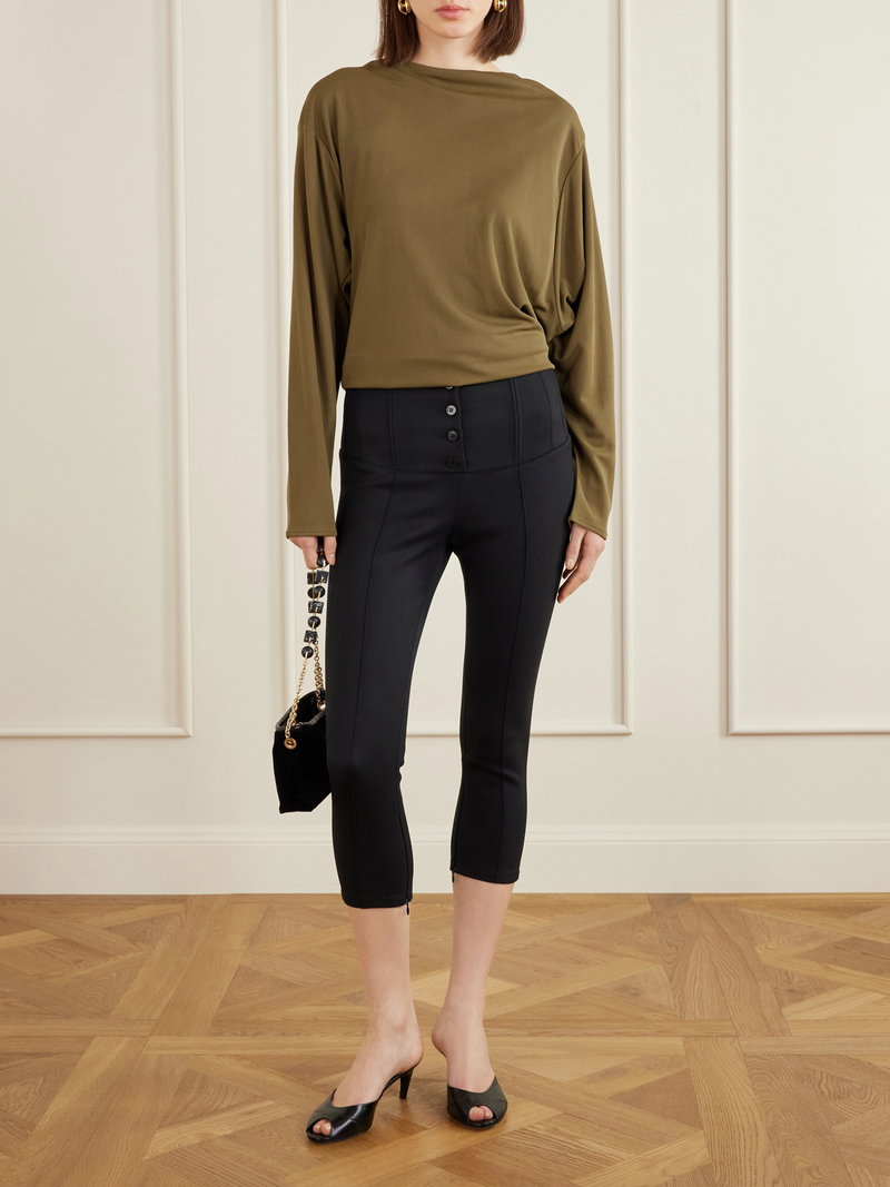 Seen on Jacquemus’ Spring '26 runway, these ' Le Pantalon Arlesien' capri pants highlight the label’s refined approach to tailoring. Made from crepe, they have a high-rise, corset-inspired waist detailed with sculptural seaming before falling to sleek skinny legs.