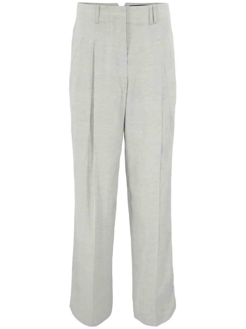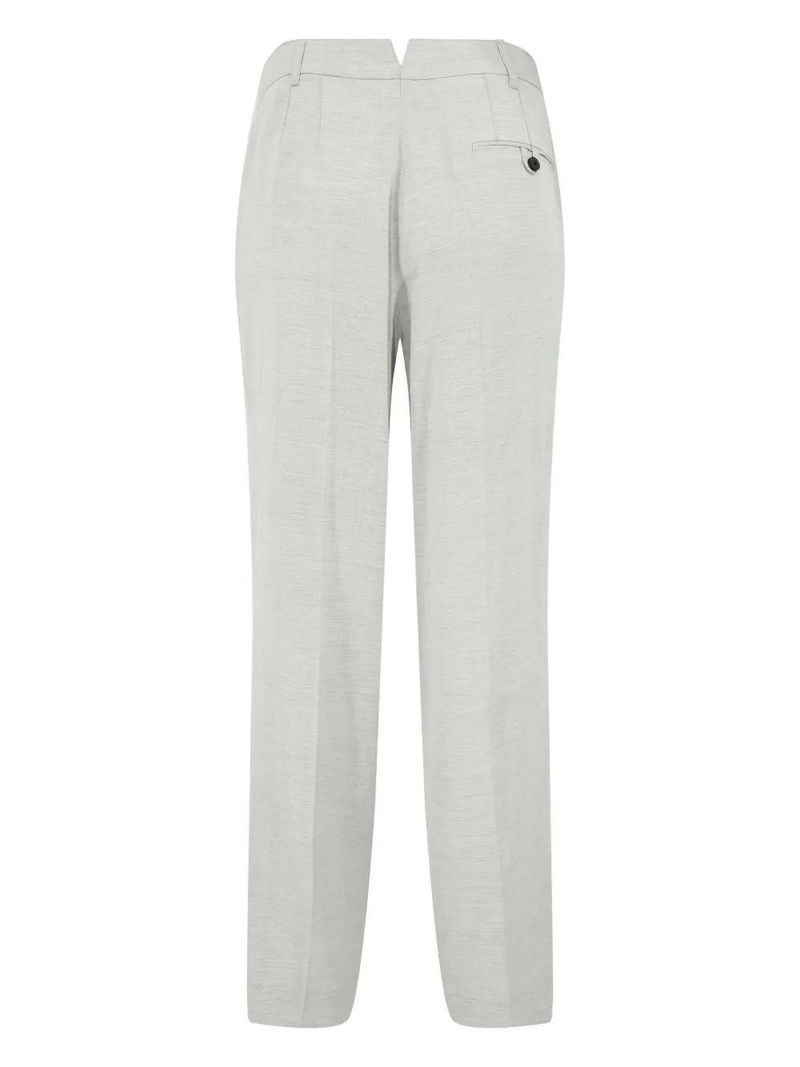 light grey interwoven design mélange effect pressed crease pleat detailing dart detailing belt loops high-waisted wide leg slip pockets to the sides rear button-fastening pocket hook and zip fly fastening unlined