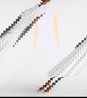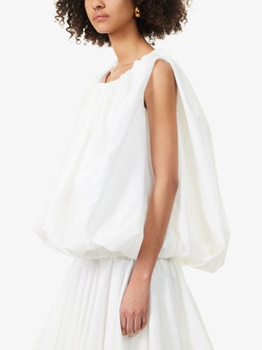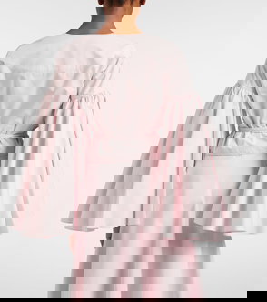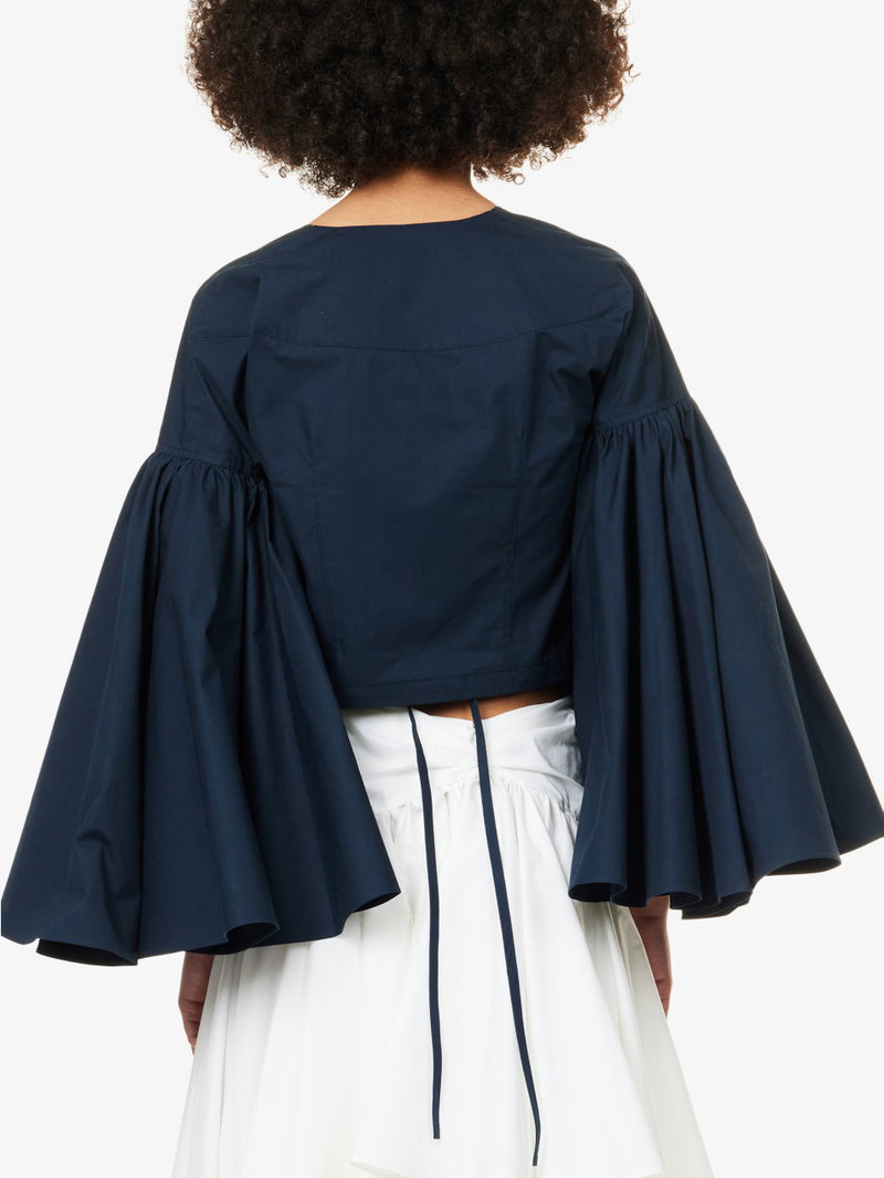 • Regular fit, surplice neckline, compact cotton poplin, long flared sleeves with godets, integrated ties on the side