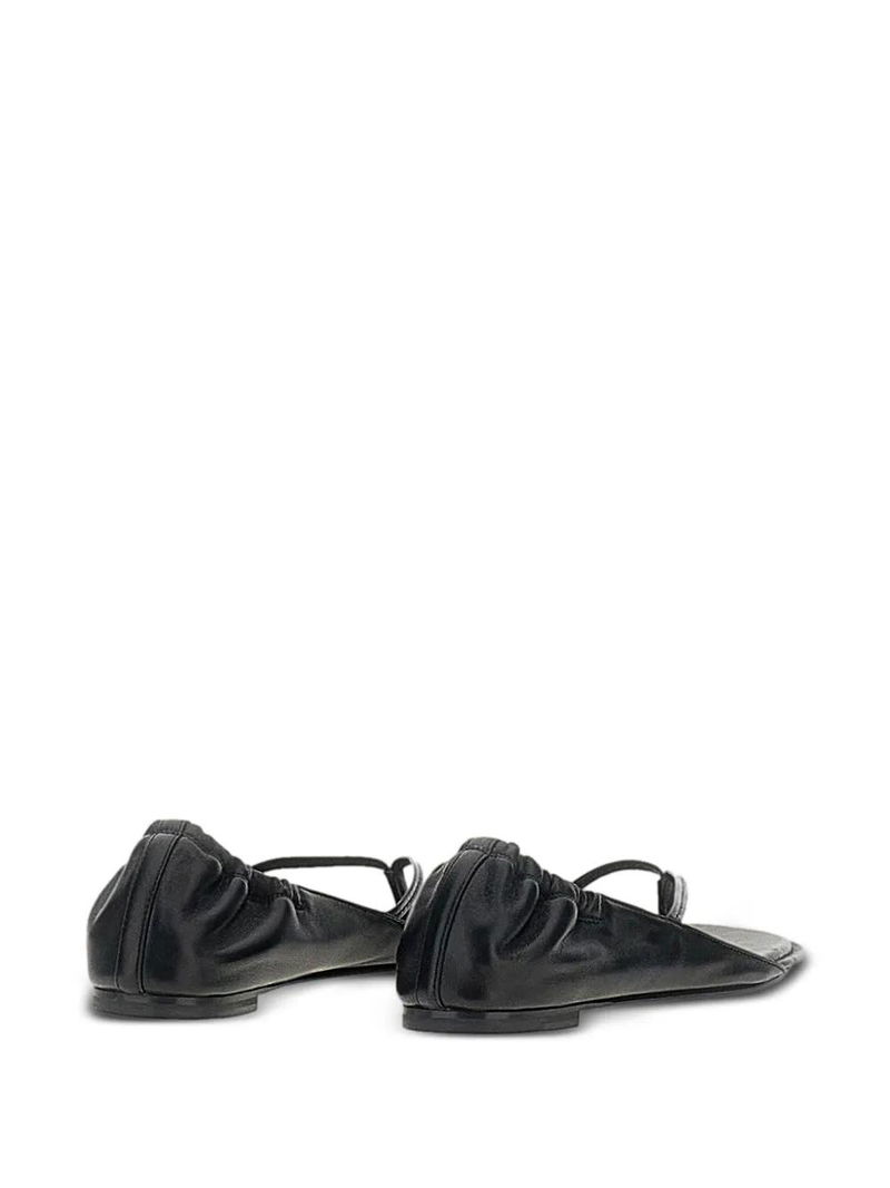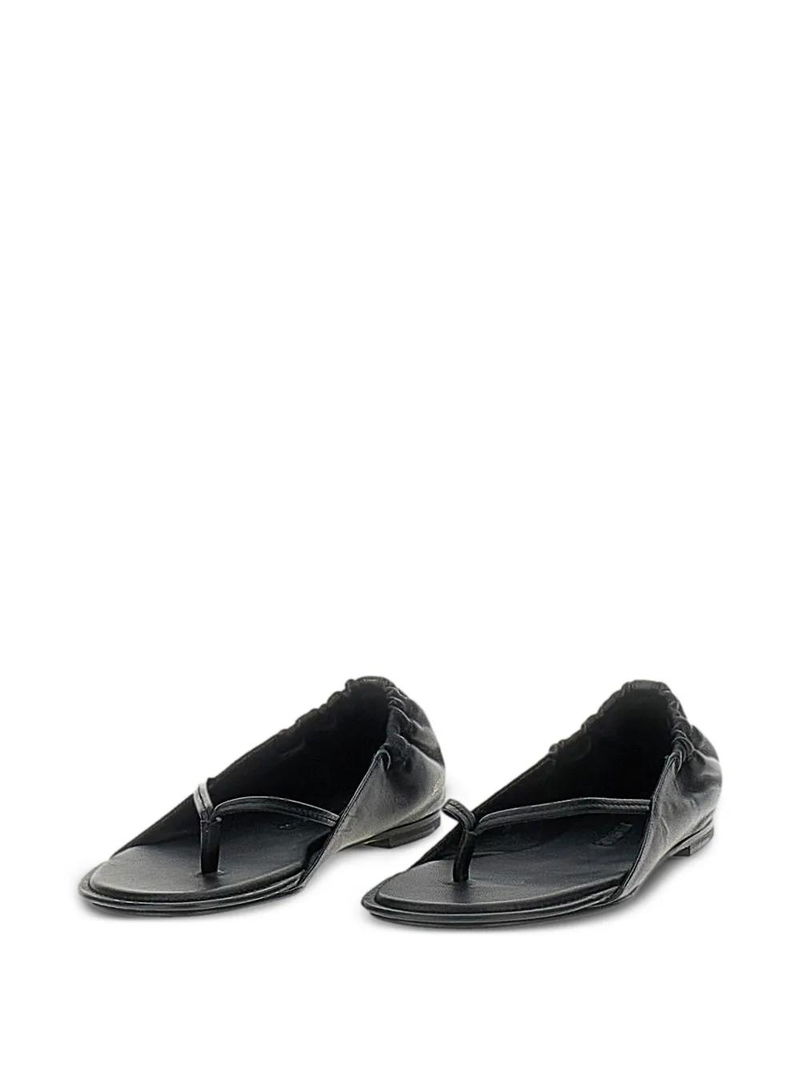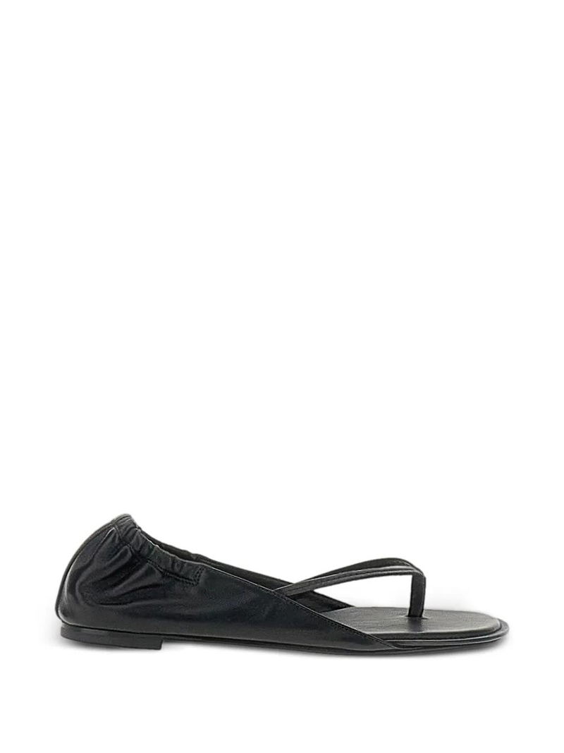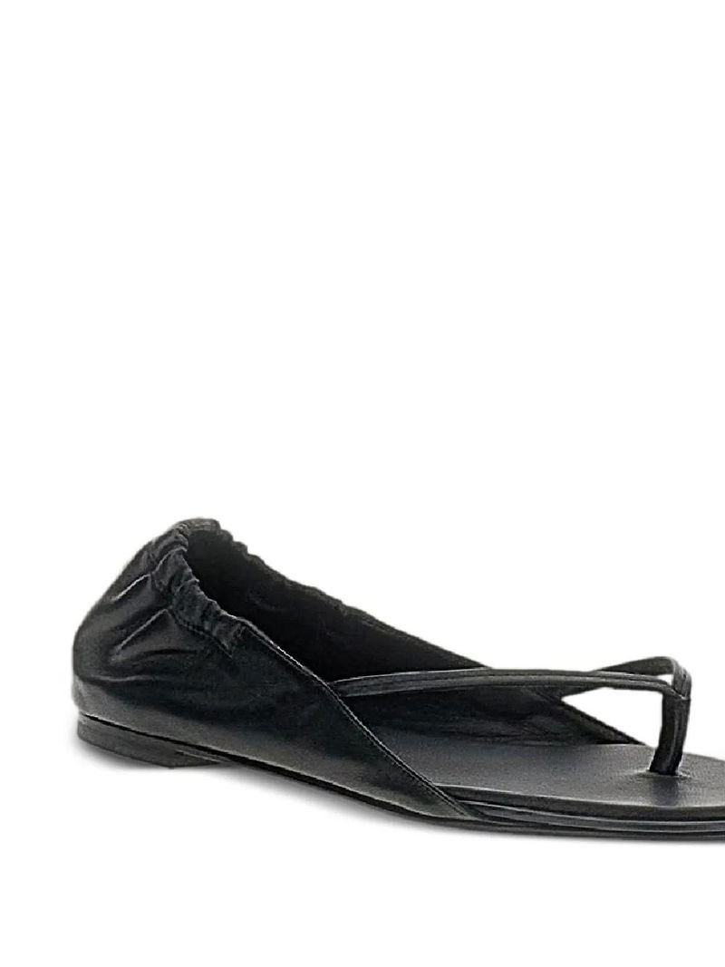 Black leather thong strap flat sole.