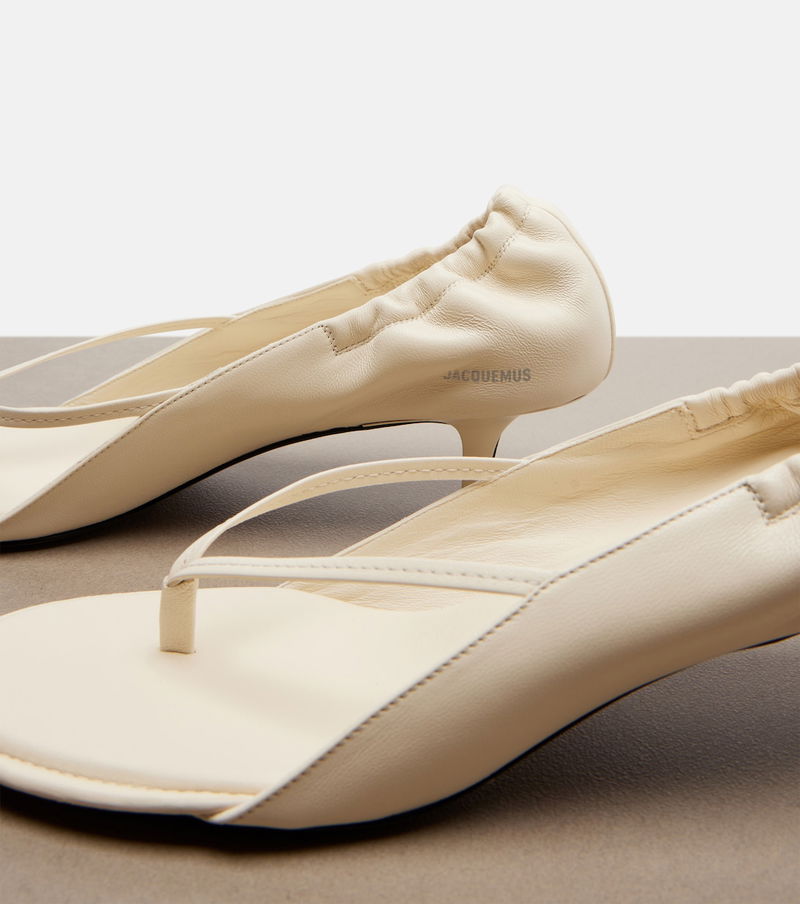 Jacquemus reinvents a classic silhouette with these thong sandals. Crafted from soft leather, the pair stand out with sleek upper straps and elasticated heel coverings, resting on sturdy, comfortable kitten heels.