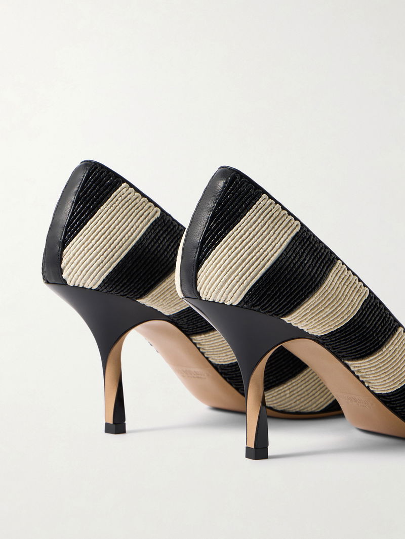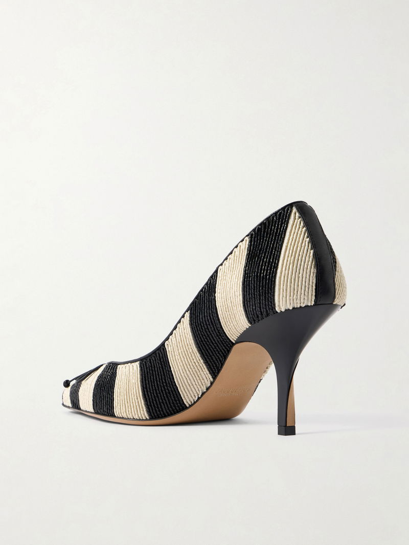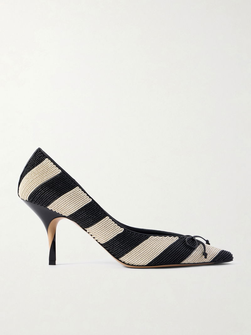 Jacquemus' 'Tourni' pumps take their name from the twisted 90mm heels they rest on. Patterned in stripes, they're woven for a raffia-effect finish and detailed with a dainty bow at the vamps.