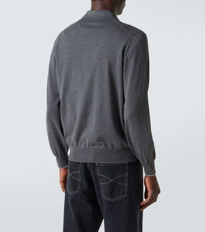 Cable knit stretch viscose polo.· Rib knit spread collar, hem, and cuffs· Three-button placket· Jacquard stripe at hem· D-ring at back collar· Corozo hardware. Part of the Les Sculptures collection.