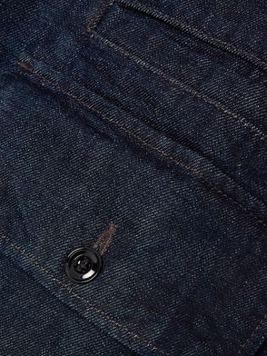 Non-stretch regenerative cotton denim jacket. Fading throughout.· Spread collar· Button closure· Flap pockets· Dropped shoulders· Dart at sleeves · Single-button barrel cuffs· Pleats at back waistband· Adjustable button tab at back waistband· Leather logo patch at back hem· Logo-engraved gold-tone hardware· Contrast stitching in tan. Part of the Les Sculptures collection.