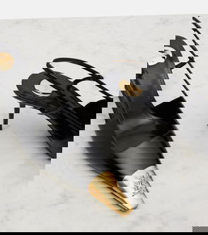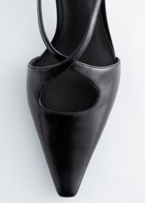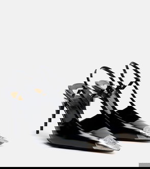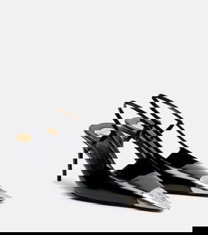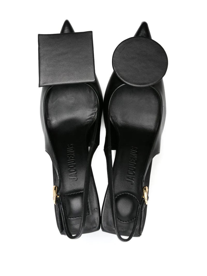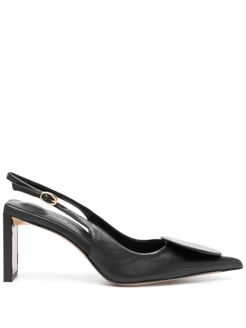 black calf leather square-shaped patch detail logo-engraved gold-tone hardware pointed toe buckle-fastening slingback strap leather lining 80mm block heel
