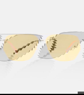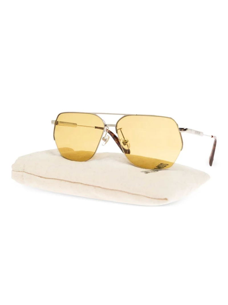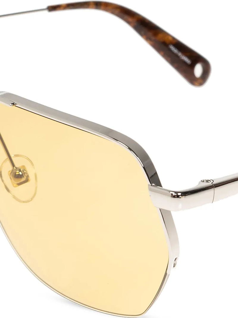 Silver-tone yellow tinted lenses nose pads straight arms.