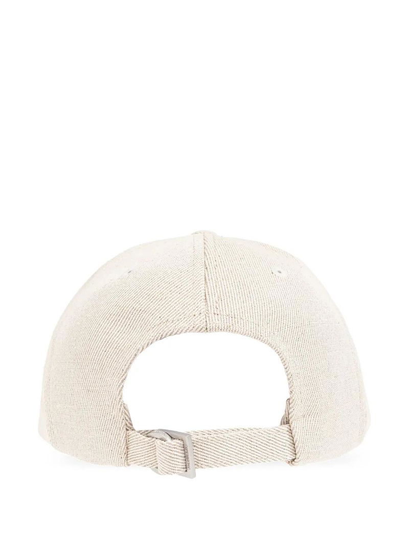Beige, rear buckle fastening, embroidered logo to the front, six-panel construction.