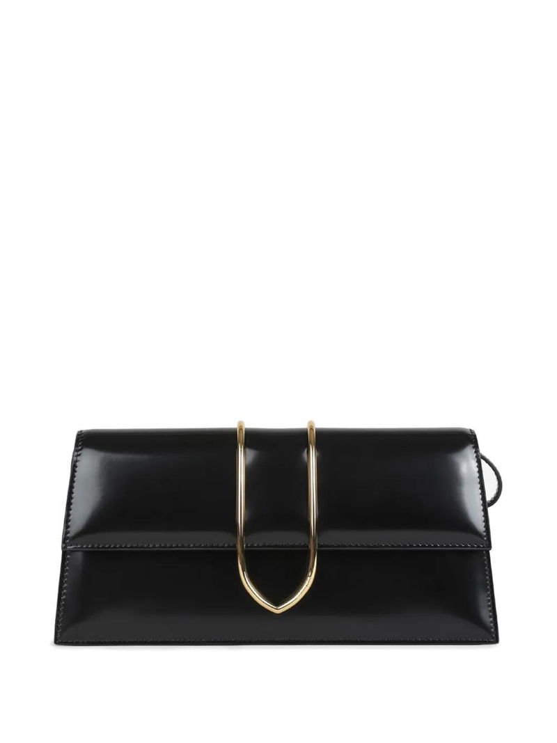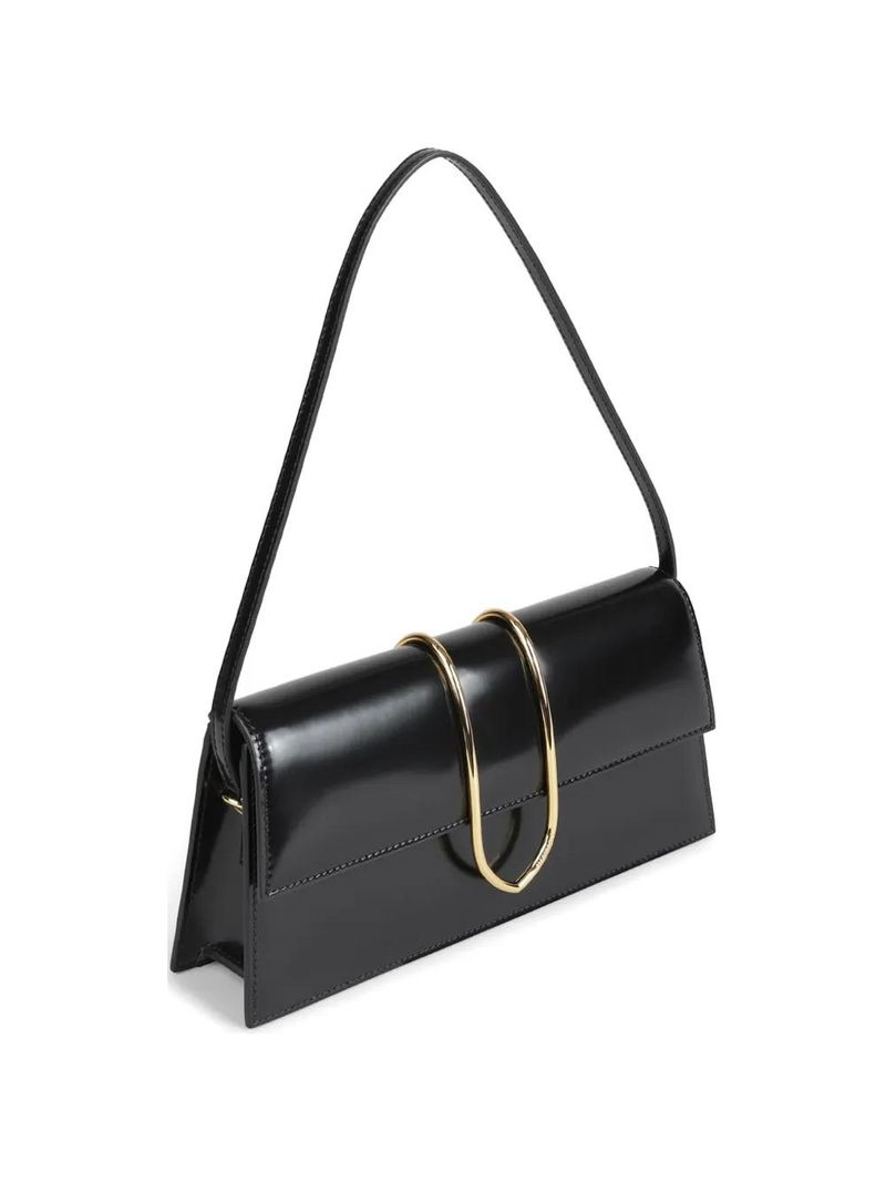 Black gold-tone hardware.