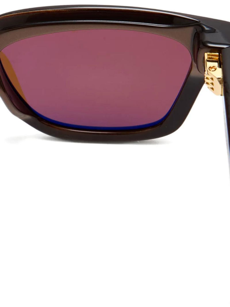 brown rectangle frame tinted lenses gold-tone hardware straight temples These glasses come with a protective case.