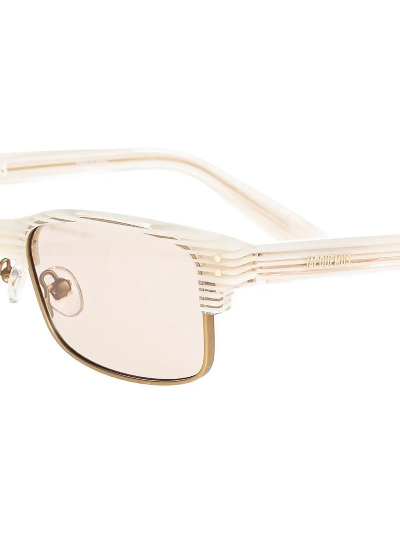White, rectangle frame, gold-tone hardware, nose pads.