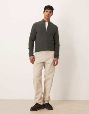 Ribbed-knit Wool Zip-up Cardigan