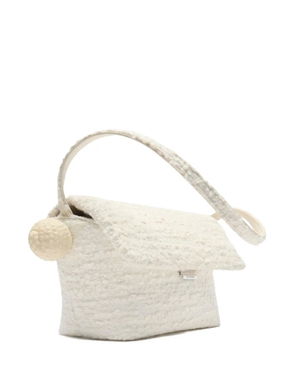 red leather gold-tone clasp spherical embellishment top handle folded design