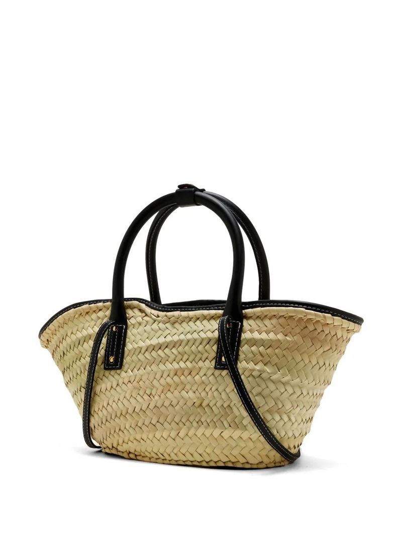 Black woven design top handle internal lobster clasp fastening appliqué detail gold-tone hardware.