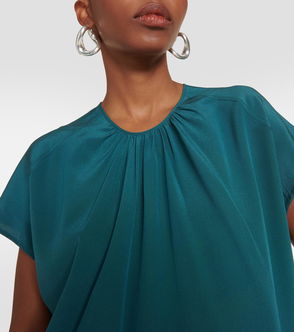 Top, Crepe, Cutouts, Ruched, Hook fastenings through front, Non-stretchy fabric, Mid-weight fabric.