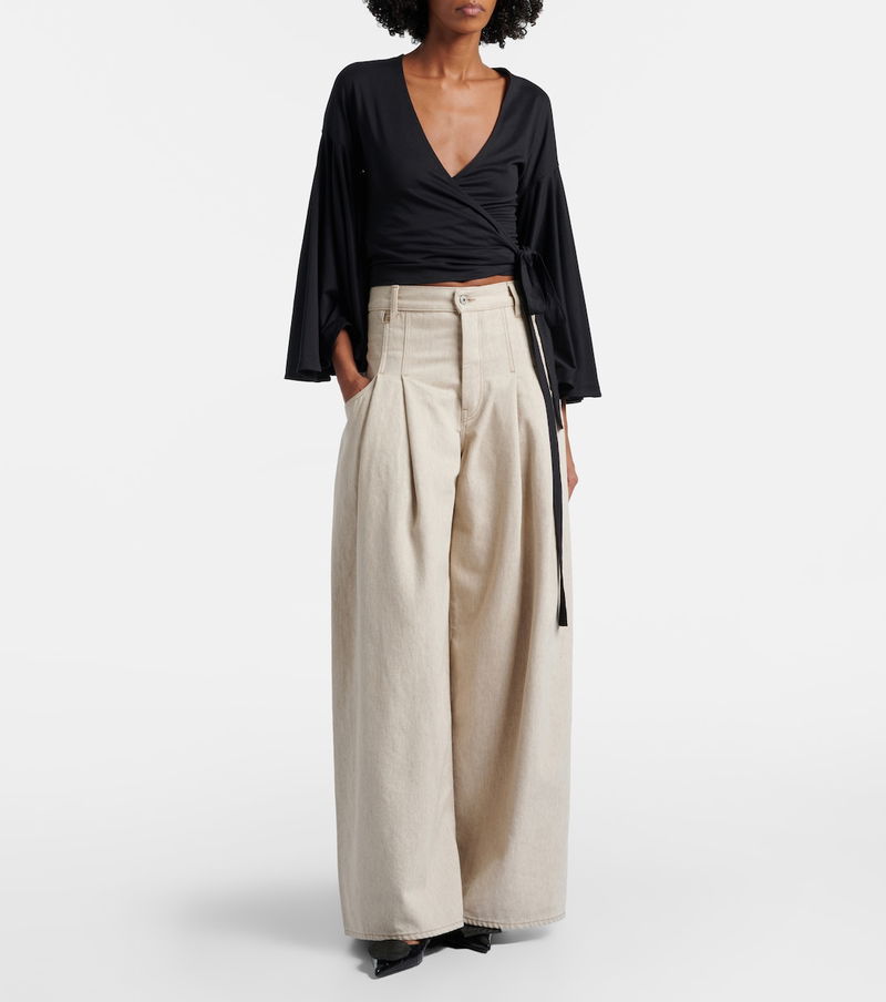 Jacquemus brings a characterful vision of French fashion to the design of every new collection. Cut from cotton-blend denim, the Souro jeans feature an ultra-high rise, wide pleated legs, and contrast topstitching.