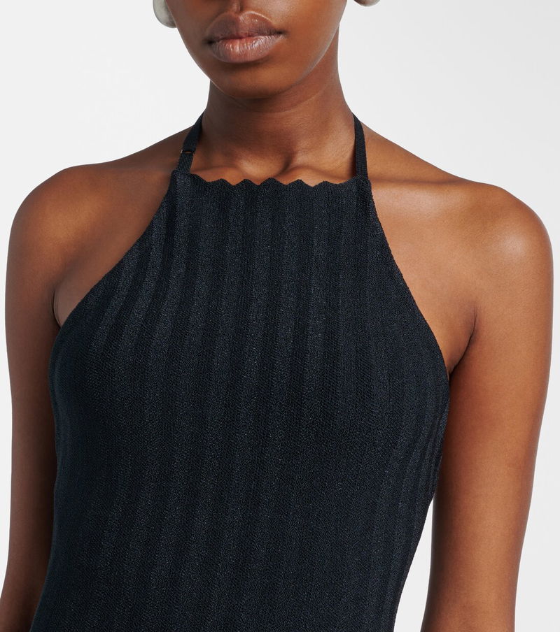Jacquemus brings a characterful vision of French fashion to the design of every new collection. This Tablier midi dress is knitted to a fitted silhouette with a low-back, showcasing an adjustable halterneck strap and a chevron finish along the neckline and hem.