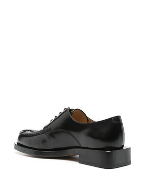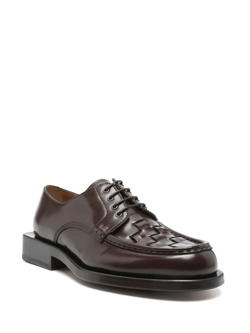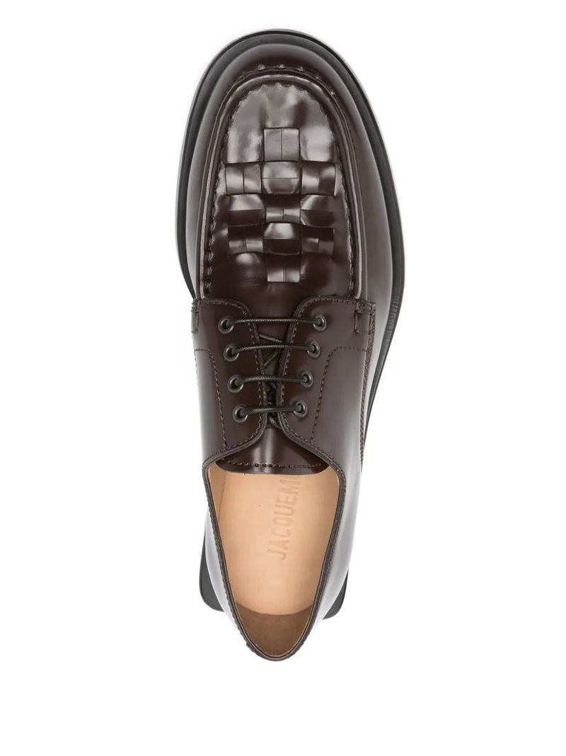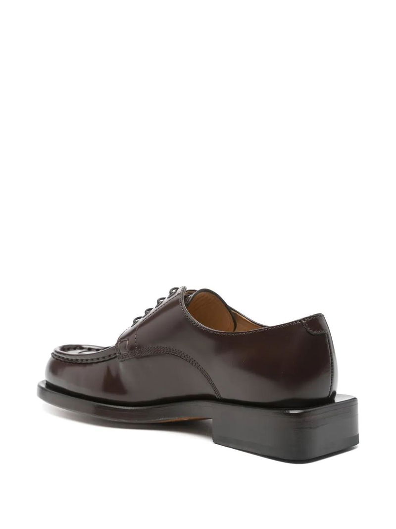 chocolate brown front lace-up fastening leather sole branded leather insole almond toe