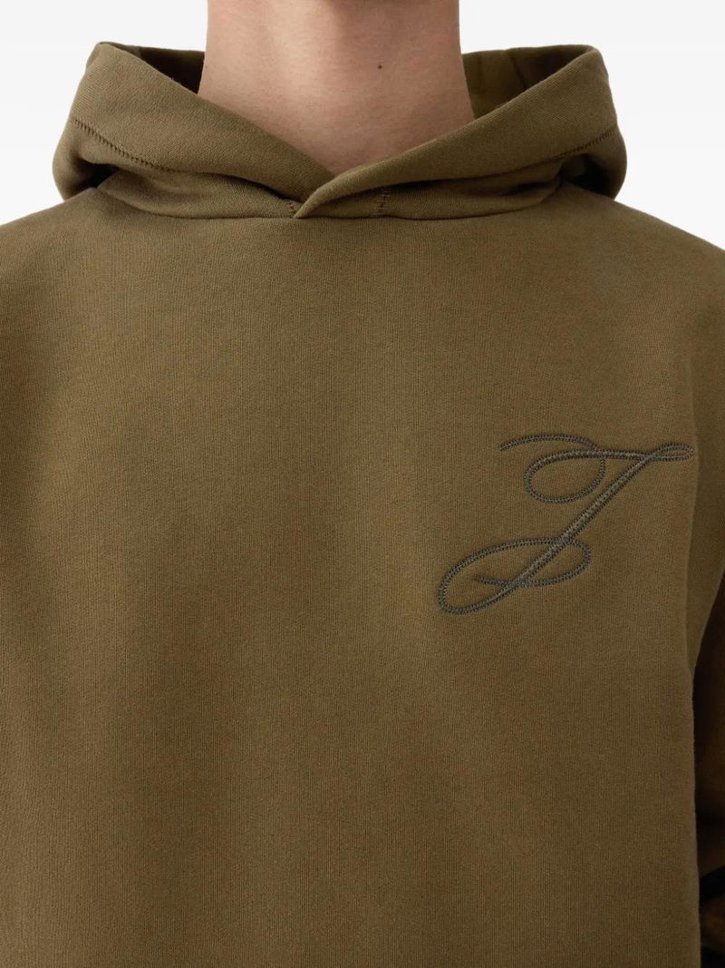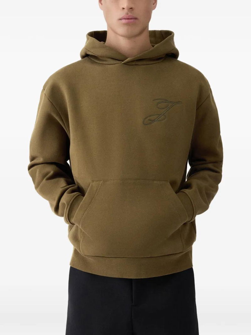 khaki logo detail drawstring hood kangaroo pocket ribbed trims