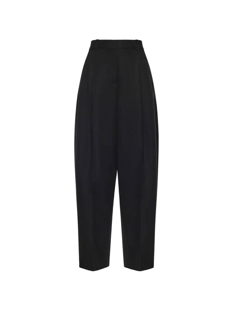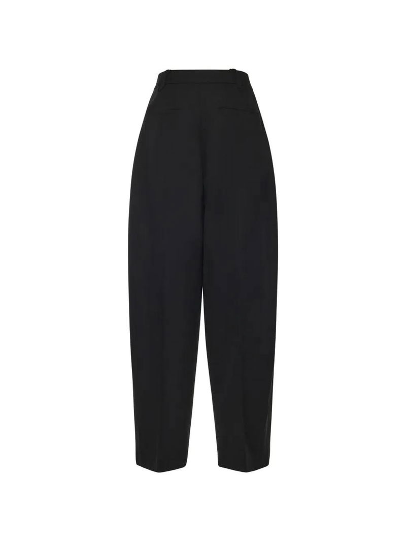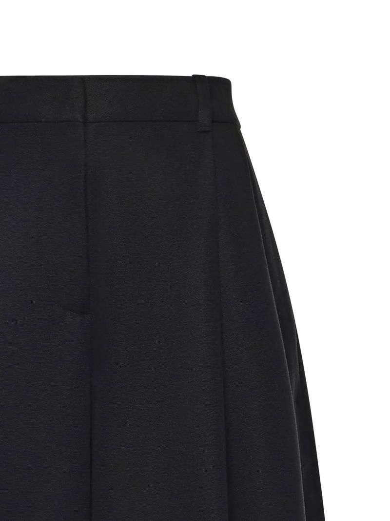 Black pleated detailing belt loops concealed front fastening side inseam pockets rear welt pocket.